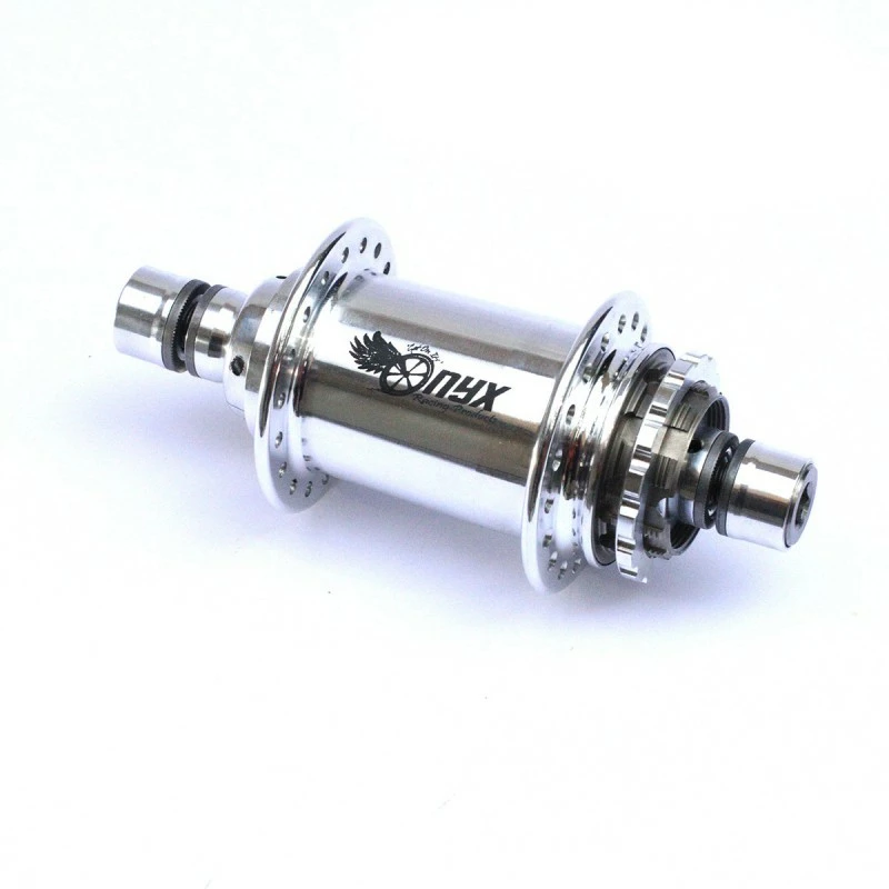 Les moyeux arrières ONYX sont conçus avec des roulements céramiques et avec des axes en titane. Avec un point d’engagement instantané, les moyeux sont silencieux et presque sans friction.